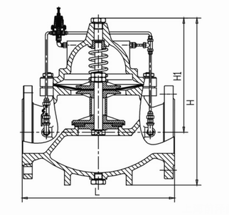 500X持壓泄壓閥由主閥、泄壓導閥針閥、球閥、微形過濾器和壓力表組成水力控制接管系統(tǒng)。利用水力自動操作,即可以作泄壓閥用又可作持壓閥用。作泄壓閥用時,可維持供水路壓力在設定的安全值之下;做持壓閥用,可維持主閥上游水壓在設定值之上,保持主閥上游供水壓力。
