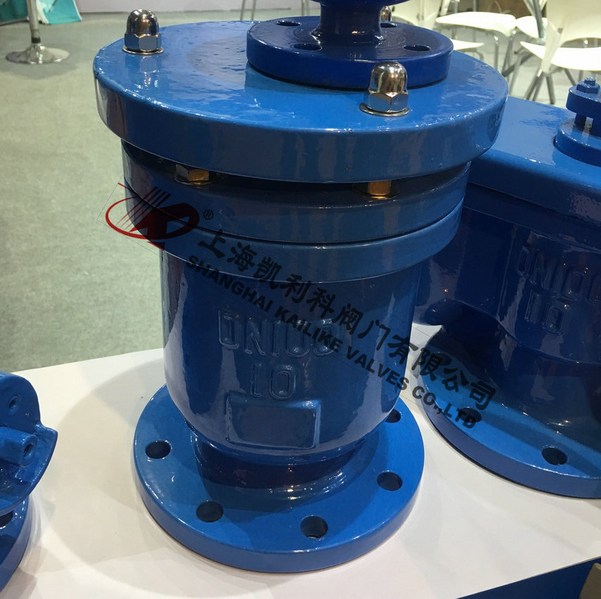 P41X、P42X快速排氣閥適用于工業(yè)介質(zhì)為水的管路上,作為快速排除管道內(nèi)氣體的設備,以提高輸送水設備的效率和保護管道不致變形破裂,是管道的必備之設備。能夠排除管道中的氣體,減少阻力節(jié)約能源。當管道負壓時能快速自動吸入空氣防止管道破裂。排氣能力是普通雙孔排氣閥多倍。浮球托架為不銹鋼,使用壽命長,安全可靠。閥為圓桶狀式閥體,共內(nèi)部主要有不銹鋼浮球及塞頭。本閥裝設于泵埔出口處或送配水管線中,用以大量排除管道中的集結之空氣,以增進水管及抽水機使用效率,且與管內(nèi)一旦出現(xiàn)負壓時,此閥能迅速吸入空氣,以保管線因負壓所產(chǎn)生損壞。