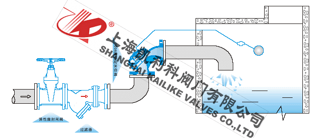 100A隔膜式定水位閥是一種隔膜式調(diào)節(jié)水箱和水塔液面高度的閥門(mén)。閥門(mén)由一特殊強(qiáng)化尼龍膜片將其分為上下兩個(gè)腔室,當(dāng)液面達(dá)到設(shè)定位置時(shí),浮球?qū)чy關(guān)閉,上腔壓力大于下腔,閥門(mén)關(guān)閉,即停止供水.當(dāng)液面下降超過(guò)預(yù)設(shè)位置,浮球?qū)чy開(kāi)啟,上腔壓力小于下腔壓力,閥門(mén)開(kāi)啟.閥門(mén)向池內(nèi)供水。